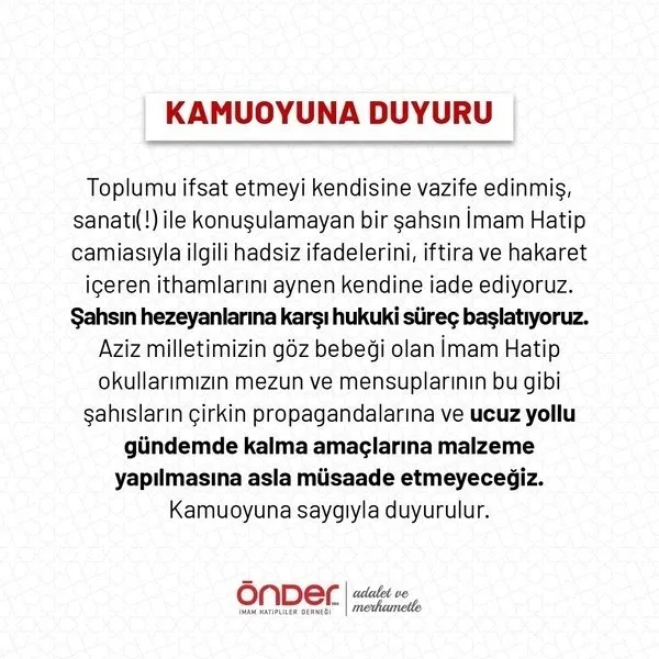 Şu ana kadar meslek hayatımda herhangi bir grubu veya insan ayırt ya da kategorize etmedim. Şakalaşmanın herhangi bir gruba yönelik nefret içerikli olarak algılanması beni çok üzmüştür. Suç işleme kastım yoktur. Atılı suçlamayı kabul etmiyorum. Kovuşturmaya yer olmadığına dair karar verilmesini talep ediyorum." ifadelerini kullandı.