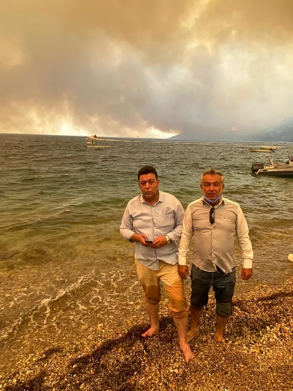 AK Parti Bodrum İlçe Başkanı Osman Gökmen'in bizzat katıldığı ve görev aldığı tahliyenin görüntülerine SABAH ulaştı. Görüntülerde kadın ve çocukların yangın alanında deniz yoluyla tahliye edildiği görülüyor.