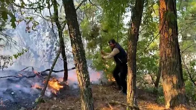 Denizli'nin Merkezefendi ilçesinde 24 Ekim'de başlayan orman yangınına havadan ve karadan müdahale devam ediyor. Başkarcı Mahallesi Başkarcı Dağı'nda sarp ve kayalık arazide etkili olan yangının kontrol altına alınabilmesi için Orman Genel Müdürlüğü'ne bağlı 6 helikopter, 1023 personel, 12 ilk müdahale aracı, 22 iş makinesi ve 67 arazöz çalışma sürdürüyor. Yangının bin metrenin üzerinde rakıma sahip bölgede etkisini sürdürmesi nedeniyle arazi şartlarına karşı mücadele veriliyor. Helikopterler, dik yamaçlar üzerinde yaklaşma imkânı bulduğu bölgelerde yangına su atışı yaparken, yer ekipleri de iş makineleri ve el aletleriyle yangının yayılım alanında şeritler açmaya çalışıyor. Ekipler, bazı bölgelerde yolun olmaması nedeniyle alevlere ulaşmak için uzun yürüyüşler yapıyor. Çalışmalara çok sayıda jandarma ve belediye personeli ile sivil toplum kuruluşlarından gönüllüler de katılıyor. Yangında yerleşim alanlarıyla ilgili bir tehdidin söz konusu olmadığı belirtildi.