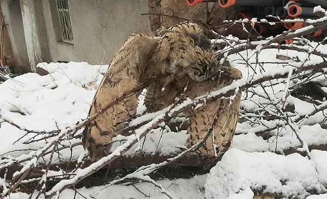 Gemerek ilçesine bağlı Eğerci köyünde yaşayan Kazım İnan, köy içerisinde hareketsiz halde yatan yırtıcı kuşu fark etti.