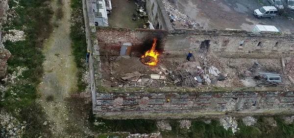 BİR YANDA RESTORASYON BİR YANDA TARİHİ DUVARIN DİBİNDE ATEŞ