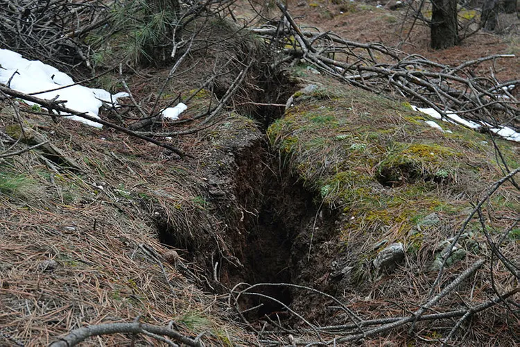 Köylülerin yamaçtaki yarıkların yaklaşık 6 ay önce oluştuğunu anlattıklarını dile getiren Özkaymak, bölgede geçen yıl bir yol genişletme çalışması yapıldığını tespit ettiklerini aktardı.