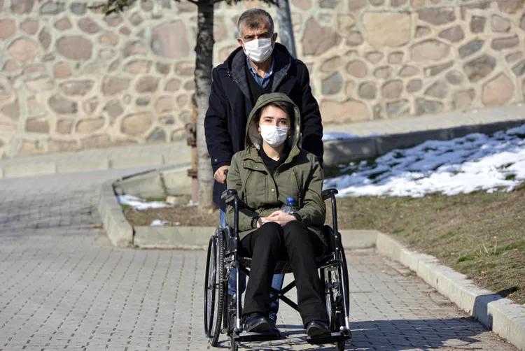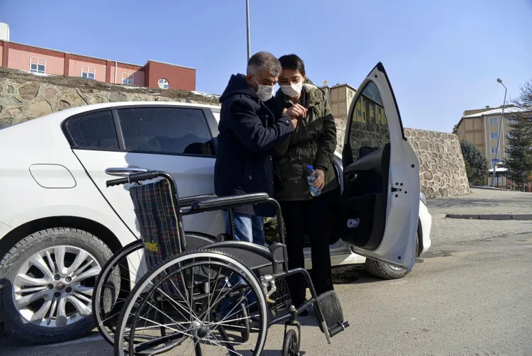 TEKERLEKLİ SANDALYE İLE TABURCU OLDU
