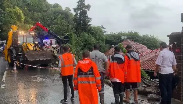 Beykoz Körfez Caddesi'nde yağmur nedeniyle saat 11.00 sıralarında restoranın istinat duvarı çöktü.