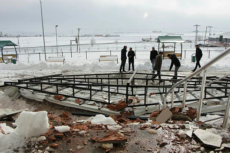 ?Karlıova ilçesinde 3 gündür aralıksız süren kar yağışı hayatı olumsuz etkiledi. Bugün sabah saatlerinde Şehit Hacı Alan Anadolu İmam Hatip Lisesi'nin kapı girişinin üzerine demir ve sacdan yapılan çatı üzerine yağan karı taşıyamayınca çöktü. Hafta sonu olması nedeniyle okulda öğrencinin bulunmaması olası bir facianın önüne geçti.