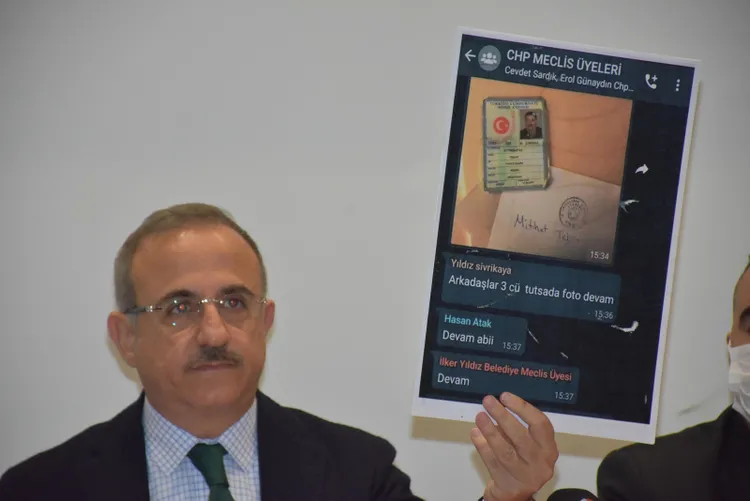 Başka bir metot bulunmuş, duyumları bize geldi. Belediye meclis üyelerine oylarını üstlerine kimliklerini koyarak cep telefonuyla çekerek WhatsApp grubuna atma talimatı gelmiş. Grup başkan vekilimiz Özgür Erman Çağlar söz alarak bu durumu bildirdi. Cep telefonlarının toplatılarak seçimin devamı talep edildi. Oturumu yöneten meclis başkanvekili taraflara söz verdi. Bir meclis üyesi Cevdet Sargı, söz aldı itiraf niteliğinde bir konuşma yaptı. Tutanaklarda var. Dedi ki 'Biz grup kararı aldık bu şekilde oy kullanacağız.' CHP Grup Başkanvekili söz alarak böyle bir grup kararının alınmadığını, bunun hukuka aykırı olduğunu ifade etti. Aynı süreçte bu talimatlar devam etti. Çünkü aynı anda oy kullanma işlemi de devam ediyor. Oturumu yöneten meclis başkan vekili telefonla biriyle konuşuyor ve talimatı aldıktan sonra 'fotoya devam' diyor. Videosu da var."