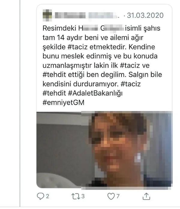 Şüphelinin daha önceden de bu sebeple çok sayıda mahkeme tarafından cezalandırıldığı, "huzur sükûnu bozmak, hakaret, tehdit, konut dokunulmazlığını ihlal" gibi suçlardan 50 sabıka kaydının bulunduğu öğrenildi. Musallat olmak için özellikle makam sahibi ve itibarlı kişileri seçen şüphelinin, saygın kişilerin aile ve iş hayatlarının zarar görmesi için ahlak dışı iddialarını sosyal medya mecralarından yaydığı görüldü. Antalya'dan Konya'ya, Bursa'dan Bolu'ya Eğirdir'den İzmir'e kadar hakkında onlarca şikâyet ve devam eden mahkemesi de bulunduğu bildirilen şüpheli hakkında bazı mağdurlar ise şantaj iddiasında bulundu. Bu kişilerin savcılık müracaatlarında ise "bir daha rahatsız etmeme ve itibara yönelik paylaşım yapmama" karşılığında şüphelinin kendilerinden para talep ettiği şikâyeti yer aldı.