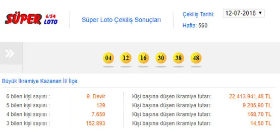 12 Temmuz Süper Loto çekilişisinde geçtiğimiz hafta kazandıran numaralar;
