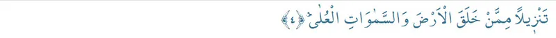 İniş sırasına göre 45. sure olmasına rağmen Kur'an'daki sıralaması 20 olan Taha Suresinin 4, 5 ve 6. ayetlerinin Türkçe anlamı ve meali şöyledir;
