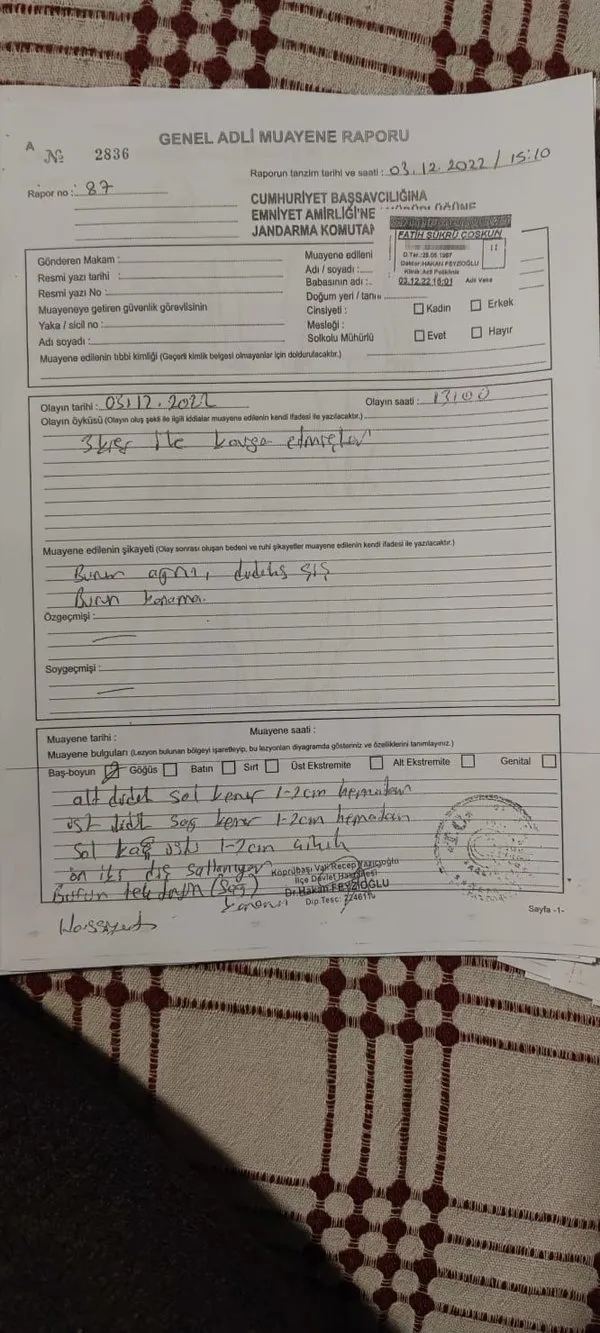 Bana 'burası bizden sorulur, kimse bize karışamaz' dediler. Sonra da beni tehdit ederek 'yaylada bulunan evin zarar görür, sen karışma' dediler. Tartışmanın ardından 3 kişi bana fiili saldırıda bulunarak yumruk attılar. Hastanede bana darp raporu verildi. Jandarmaya gittik, alınan ifadelerimizin ardından savcılığa giderek o kişilerden şikâyetçi oldum. Olayla ilgili soruşturma başladı"