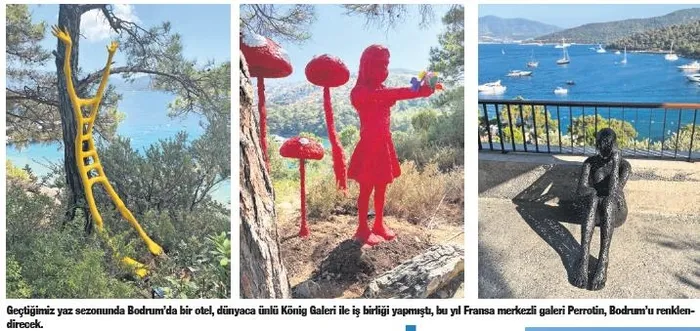 İlk durak elbette Bodrum. Sanat, Bodrum için son yılların en elit heyecanı. Bazı oteller sadece bu yönüyle insanların hafızasına kazındı bile. Mesela Bodrum Loft. Açıldığı 2020 yılında ilk sergisi Globart küratörlüğünde 'Element'ler adında projese hayata geçti. Bu sahilde sanatın ilk adımlarından biriydi. 2021 yılında ise Sevil Dolmacı Art Gallery tarafından Türkiye'de ilk kez açık hava heykel parkı "Loft Art Sculptville" hayata geçirildi. Pablo Escobar'a ait olan ve günümüzde görkemli bir çağdaş sanat koleksiyonuna sahip beach resort Casa Malca, Tulum koleksiyonunda eserleri yer alan ve Londra Saatchi Gallery'de uzun süreli sergilenen Kolombiyalı sanatçı Rafael Gomezbarros'un enstalasyonları "House Taken" Türkiye'de ilk kez Bodrum Loft'un açık hava heykel parkında sergilendi.