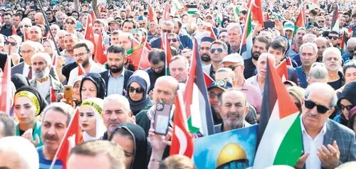 Filistin'e destek sloganları... Gazze şehitlerine dualar yükseliyor.