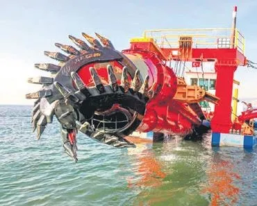 Evlerdeki elektrik süpürgesi gibi... Denizdeki dip çamurunu vakumla çekiyor... Ve sekiz kilometre uzunluğundaki boru hattıyla karaya pompalıyor...