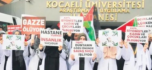 Sağlık personeli... Tek yürek, tek ses olmuşlar... "Soykırım... Nerede insanlık? Nerede Batı?" diye haykırıyorlar.