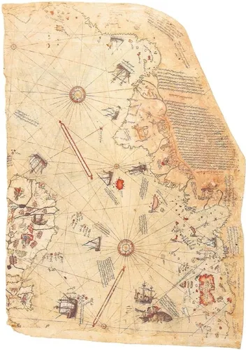 OSMANLI İmparatorluğu, Kolomb'un 1492 yılında Amerika'yı keşfinden, kısa bir süre sonra haberdar oldu. Çizdiği haritalarla tarihe geçen büyük denizcimiz Piri Reis, amcası Kemal Reis'in bir savaşta esir aldığı, Kolomb'la üç kez Amerika'ya gitmiş olan bir İspanyol'dan Amerika'yı nasıl keşfettiklerini öğrendi. Kolomb'un yaptığı Amerika kıyılarını gösteren harita da Piri Reis'in eline geçmişti. Piri Reis, esir İspanyol'dan Kolomb'la ilgili dinlediklerini 1513 tarihli meşhur dünya haritasının üzerine kaydetti. Haritanın üzerinde Amerika'nın keşfiyle ilgili ilginç bilgiler vardır. Piri Reis, Kolomb'un Amerika'yı keşfedişinin hikâyesini şöyle anlatır: