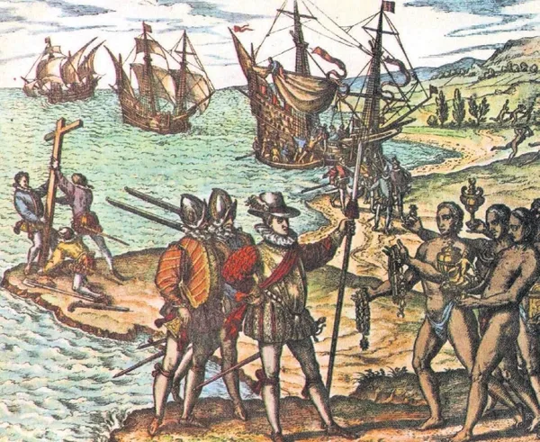 Kolomb, Antil Adaları'nda karaya çıkıyor.