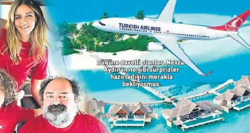Düğün tarihini de benden öğrenin; Maldivler'deki düğün, 23-27 Şubat tarihleri arasında olacak. Aydın, 23 Şubat'ta özel uçak kaldırıp müstakbel eşi ve davetlileriyle birlikte Maldivler'e uçacak. 4 gün 4 gece sürecek düğünün ardından 27 Şubat'ta yine özel uçakla Türkiye'ye dönecekler. Bu arada Nevzat Aydın'ın, müstakbel eşiyle geçen hafta Maldivler'e gittiğini öğrendim. Kapattıkları adayı yakından görmek, otelin ve organizasyon şirketinin yetkilileriyle görüşmek için gitmişler. Üç gün kaldıkları Maldivler'de düğünün organizasyonla ilgili detayları konuşup düğüne son şeklini vermişler. Şimdi geriye bir tek Maldivler'e gidip evlenmek kalmış.
