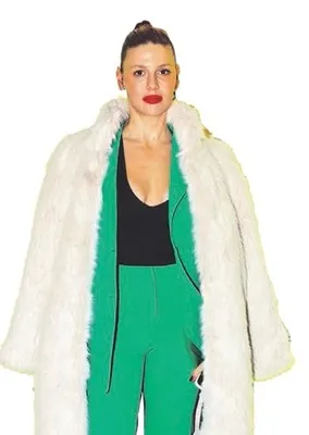 Beyaz, düz bir tişört bile daha doğru olabilirdi. Peluş kabanı, güzel bir parça ancak bu kombinle harcanmış. Ediger, bu pantolonu beyaz bir gömlekle tercih edip, renkli bir ayakkabıyla görünümü tamamlasa çok şık olabilirdi.