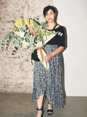 Sonbahar için çok güzel bir seçim olan elbisesini de, abartıdan uzak aksesuarlarla ve kendisine çok yakışan modern bir topuz ile tamamlamış. Böylece harika bir görünüm ortaya koymuş.