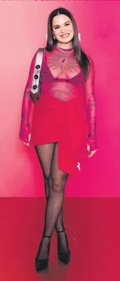 Desenli, fuşya tül bluzu ve kırmızı tonlarındaki drape detaylı eteği, içine giydiği büstiyer ve siyah çorabı ile bir araya gelince yorucu bir görünüm ortaya koymuştu. Aslı Bekiroğlu, bluzunun içine daha natürel tonlarda bir büstiyer giyip, hiç çorap tercih etmeseydi daha hoş bir görünüme sahip olabilirdi.