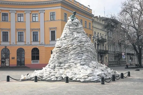 Savaşta meydanlardaki birçok heykele zarar gelmesin diye eserler, kum torbalarıyla kaplandı. Örneğin tarihi Richelieu Heykeli onlardan biri. Karadeniz sahilindeki Odessa'da da olası bir saldırıya karşı hazırlıklar devam ediyor. Bölgedeki Ukraynalılar, Rus işgaline karşı kum torbaları ve demirlerle barikat oluşturmaya devam ederken çekilen bir fotoğraf, Odessa halkının sanata ve kültüre verdiği önemi gözler önüne serdi. İnanılmaz bir görüntü gerçekten... Bir ülke sanatına, heykeline savaşta bile ne denli sahip çıkıyor, görün. Odessa'nın merkezindeki ünlü Primorsky Bulvarı'nda bulunan bu ünlü heykel Dük Richelieu'yu tasvir ediyor. Turistlerin uğrak noktası olan heykeldeki Richelieu, bir dönem Odessa Belediye Başkanı olarak görev yapmıştı.
