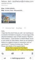 Mail kutuma New York'un en ünlü müzayede evinden Jack Nelson adında bir kişiden mail düştü. Miami Art Basel zamanı, yazdığım bir haberde kullandığım görselleri önümüzdeki günlerde başlayacak bir açık artırmada kullanmak üzere istediklerini belirtmiş. Niye istiyorsunuz bu görselleri diye sorduğumda ise önümüzdeki günlerde heyecanla beklenen dünyaca ünlü sanatçıların eserlerinin satılacağı bir açık artırmayı kısaca özetledi. Maildeki açıklamada gurur verici olay şu ki; söyledikleri kişi dijital sanat alanındaki gururumuz olan Refik Anadol'un yeni eserinin o müzayedede NFT olarak satılacak olması.