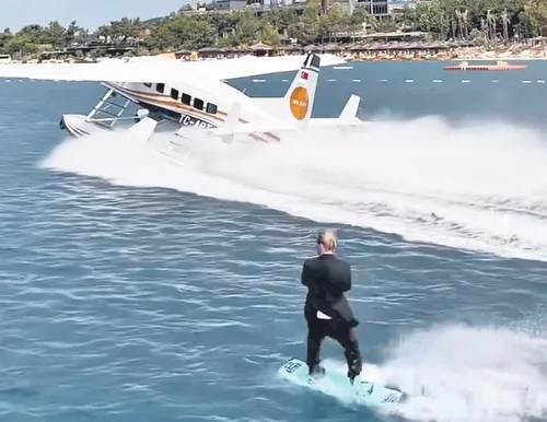 Her yıl bu zamanlarda yaz sezonunun yeni trendlerinden bahsediyoruz. Plaj modası, trend mekanlar, festivaller ve deniz üzerindeki yeni yüzen oyuncaklar belki de uçaklar. Yanlış okumadınız geçtiğimiz günlerde Bodrum'da bir deniz uçağıyla beraber denizin ortasında wakeboard yapıldı. Denizin üstünde harikalar yaratan bir eğitmen ve küçük çaplı bir fenomen Süleyman Atlı'dan başkası değil uçakla beraber bu şovu yapan.