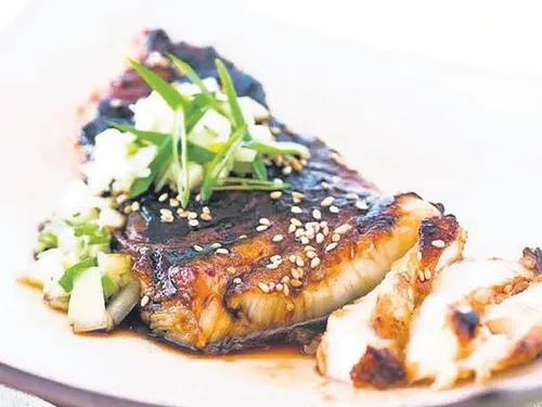 YAPILIŞI: Bir kasede limon suyunu, soya sosunu, karabiberi, dövülmüş veya rendelenmiş sarımsağı karıştırıyoruz. Bu karışımı temizlenmiş ve dilimlenmiş levrek üzerine boşaltıp karıştırıyoruz ve 30 dakika buzdolabında bekletiyoruz. Levrekleri yağlı kağıt serilmiş fırın tepsisine dizip kalan karışımı üzerine gezdiriyoruz. Önceden ısıtılmış fırında 200 derece sıcaklıkta levrekleri üzeri kızarıncaya kadar pişiriyoruz.