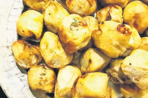 YAPILIŞI: Un, tuz ve suyu karıştırarak mantı hamuru kıvamında hamur elde edin. İyice yoğurup dört parçaya ayırın ve her birini beze yapıp ince olarak açın. Dört santimlik kare parçalara kesin ve her birinin üzerine fırça yardımıyla zeytinyağı sürün. Hamurları bu şekilde dinlendirirken başka bir yerde soğanı rendeleyip içine baharatları, tuzu ve kıymayı ekleyip yoğurun. En son maydanozu incecik kıyıp ekleyin. Kare hamurların ortasına bir parça koparıp yerleştirin ve hamuru kıymanın üzerine bohça gibi sıkıca bastırarak kapatın. Derin bir kızartma tavasına sıvı yağ koyup yağ iyice ısındığında hazırlanan bohçaları içine atıp kızartın. Derin bir servis tabağına yan yana sıralayıp üzerine çok sıcak olan tavuk veya et suyunu döküp 5 dakika kadar dinlendirin ve sıcakken yoğurt eşliğinde servis yapın.