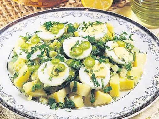 YAPILIŞI: Patatesler haşlanır, kabukları soyularak iri küp halinde doğranır. Soğanlar soyulup piyazlık dilimlenerek tuzla acısı alınır. Haşlanmış yumurta ve maydanoz içine doğranır, limon, tuz, zeytinyağı, biraz karabiber ve pulbiber ile karıştırılır.