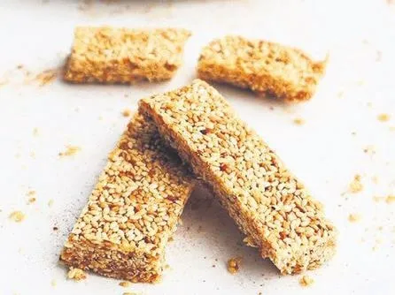 YAPILIŞI: Susam kavrulmamışsa 10 dakika tavada kavuruyoruz. Şekeri teflon tavaya alıyoruz. Limon suyunu da katıp kısık ateşte karamelize ediyoruz. Bu arada yağlı kağıttan büyükçe iki parça kesiyoruz. Şeker tamamen eriyince ocağın altını kapatıp susamı ekleyip hızlıca karıştırıyoruz. Yağlı kağıdın üzerine döküp diğer yağlı kağıdı üstüne kapatıp merdane ile düzleştiriyoruz. Hemen büyük bir bıçakla istediğimiz gibi kesiyoruz.