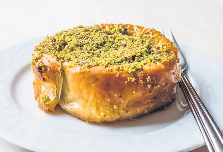 YAPILIŞI: Şerbet için, bir tencereye su ve toz şekeri koyuyoruz. İçine bir-iki damla limon suyu ilave edip kaynatıyoruz ve ılımasını bekliyoruz. Bir tavaya tereyağı koyup eritiyoruz. Baklavalık yufkaları düz bir tezgaha seriyoruz. Bir adet baklavalık yufkanın üzerine tereyağını gezdiriyoruz.
