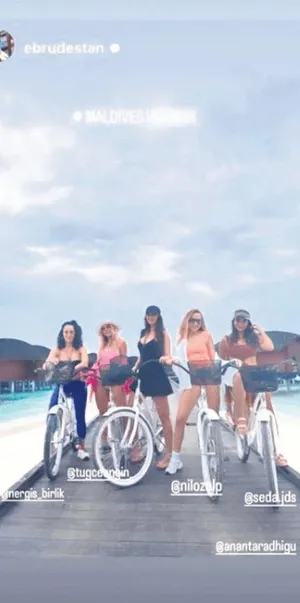 Sunucu Ebru Destan, şarkıcı Nil Özalp ve kankaları Nergis Birlik, Tuğçe Engin ve Sade Uçar bu tezimi doğrulamışlar. Beş kadın, 'kız kıza tatil' için soluğu Maldivler'de almışlar. Üstelik söylemleri de bomba; "Bu bir klişe, Maldivler'e sevgili ile gidilmez, erkekle gelirseniz şişersiniz. Erkek sıkılır, vır vır konuşur, başınıza ihale olur..."