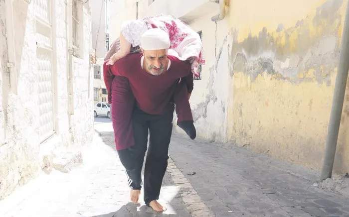 Şanlıurfa'da, geçtiğimiz hafta 65 yaş üstü vatandaşlara getirilen sokağa çıkma izninde Mustafa Hamamcı isimli bir vatandaş 22 yıldır baktığı yatalak annesini sırtına alıp sokakta gezdirdi.