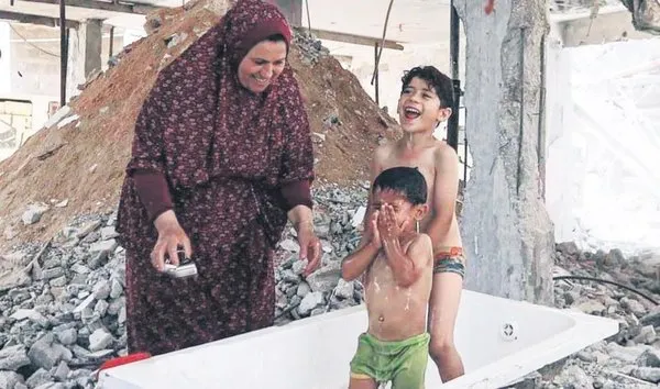 Bomba yok. İsrail askeri yok. Çocuklar, anneleri gülüyor.