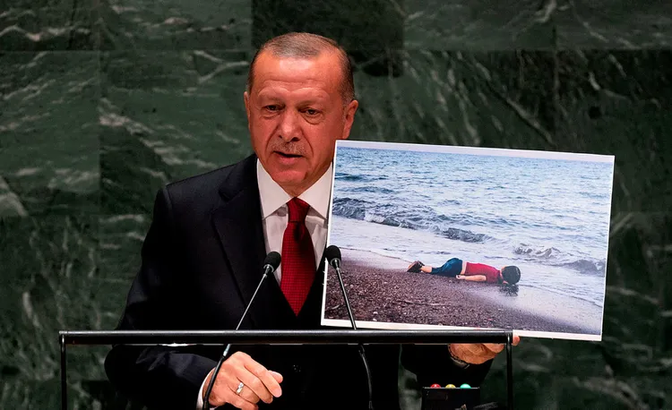 * (ABD programı) Hem BM Genel Kurulu'na hitabımda hem de ikili görüşmelerimizde önemli mesajlar verdik. Küresel sistemin temel sorunu adaletsizlik ve eşitsizlik üretilmesidir. İnsan onuruna yakışır bir dünya sistemi kurmak zorundayız. Bunun için de her platformda "Dünya beşten büyüktür" diyorum. Mülteci krizi küresel boyutlara ulaşmış durumda fakat dünyanın ilgisi başka yerlerde. Bu noktaya dikkat çekmek için Aylan Kurdi bebeğin fotoğrafını gösterdim.