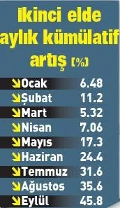Bu dönemde sıfır otomobil fiyatlarındaki artış ise yüzde 17.66 ile yüzde 60.23 arasında gerçekleşti. Ortalama fiyat artışı ise yüzde 37.63 oldu. Bu artışın yaklaşık yüzde 25.32'si ÖTV matrahından kaynaklandı. Yapılan hesaplamaya göre ikinci el otomobil fiyatlarındaki artış sıfır otomobilleri solladı.