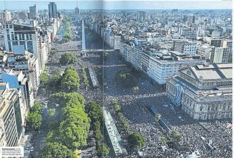 Messi ve arkadaşlarının Dünya Kupası zaferini Buenos Aires'te kutlayan Arjantinliler yeni bir rekora imza attı. 67.5 metrelik dikilitaşın bulunduğu Cumhuriyet Meydanı ve ona bağlanan Buenos Aires'in geniş caddelerinde kutlamaya katılan insan sayısı 5 milyon olarak duyuruldu. Bu da Arjantin nüfusunun yüzde 11'i demek. Ülkenin en büyük rekabeti olan River-Boca'ya ev sahipliği yapan El Monumental ve Bomboneras'ın kapasitesine göre hesap edecek olursak, River'ın stadının 69, Boca'nın stadının ise 92 katı bir kalabalık demek bu