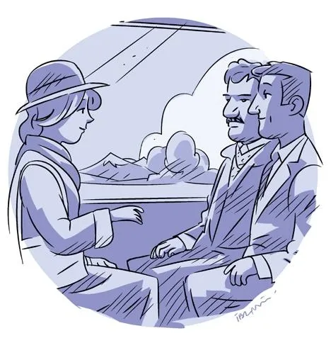 Doğuya giden Boston-Maine ekspresinin vagonlarına Denver'de bir yolcu akını oldu. Vagonlardan birinde şık giyimli ve etrafı deneyimli bir yolcuyu rahat ettirecek her şeyle kuşatılmış çok güzel, genç bir kadın oturuyordu. Yeni binenler arasında iki genç adam vardı. Biri kimseye metelik vermez görünümünün yanı sıra incelikli yüz ifadesiyle yakışıklı bir delikanlı, öbürü ise iriyarı, asık suratlı ve derbeder giyimli bir adamdı. Birbirlerine kelepçeyle bağlıydılar.