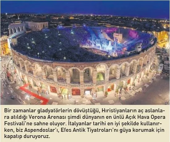 Açık havada opera denince dünyada akla ilk gelen yer, şüphesiz ki Verona'daki Arena'dır, Arena di Verona! Her yıl dünyanın en ünlü opera festivallerinden birisi hatta birincisi burada yapılır.