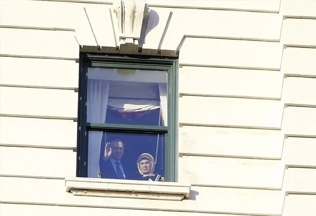 Erdoğan, otel önünde bekleyenleri selamladı.