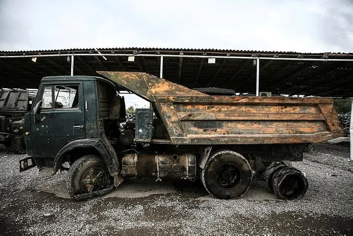 Azerbaycan ordusu tarafından ele geçirilen Ermenistan'a ait araçlar görüntülendi. Araçlar, Azerbaycan'ın Yevlah kentindeki üsse getirildi.