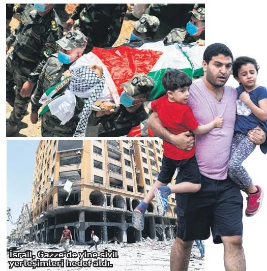 İsrail jetleri dün sabahki saldırılarında Gazze'deki sivil yerleşim alanları, altyapı sistemleri ve emniyet birimlerine ait noktaları hedef aldı. İsrail'in hava saldırısında 14 katlı Eş-Şuruk adlı bina çöktü. Gazze'deki Hükümet Bilgilendirme Ofisi'nden "Konut kulelerinin hedef alınması savaş suçudur" açıklaması yayınlandı. Öte yandan Mescid-i Aksa'daki İsrail polisi ile Filistinli gençler arasında yaşanan çatışma hâlâ devam ediyor. İsrail polisleri, Mescid-i Aksa'da kılınan teravih namazından sonra bir kez daha Filistinli gençlere ses bombaları ile saldırdı.