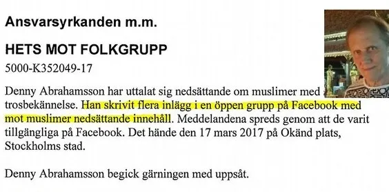 İsveç'in başkenti Stockholm'de 74 yaşındaki Denny Abrahamsson, sosyal medya üzerinden cami dışında bayram namazı kılan Müslümanlar'a hakaretten cezaya çarptırıldı.