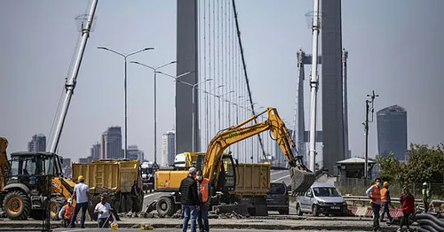Ekipler, 15 Temmuz Şehitler Köprüsü'nün Anadolu'dan Avrupa'ya geçiş kuzey platformunda iş makineleriyle araç sayım sisteminin takılacağı TAK'ları kurmaya başladı.