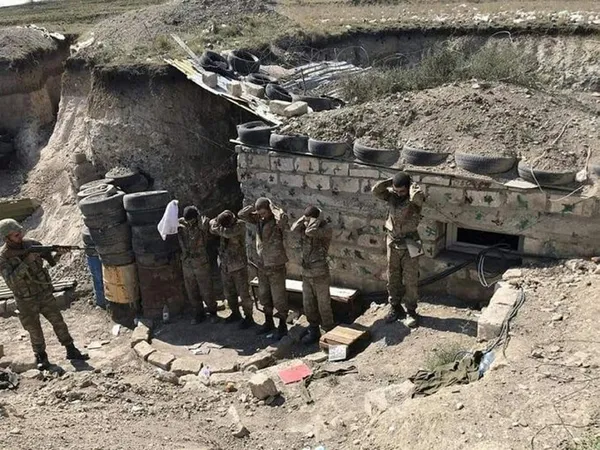 Azerbaycan ile Ermenistan arasında, Dağlık Karabağ bölgesinde başlayan yoğun çatışmalar, 7. günü geride bıraktı. Ermeni güçlerin 27 Eylül'de Azerbaycan sivil yerleşim birimlerine ateş açması üzerine, karşı atağa geçen Azerbaycan ordusu, ilerleyişini dört koldan sürdürüyor. Ermeni işgali altındaki Dağlık Karabağ bölgesini, kuzey ve güneyden kuşatan Azerbaycan ordusu,bir grup Ermeni askeri esir aldı. Azerbaycan Savunma Bakanlığı, beyaz barakla teslim olan Ermeni askerlerinin perişan haldeki durumuna ilişkin yeni görüntüleri servis etti.