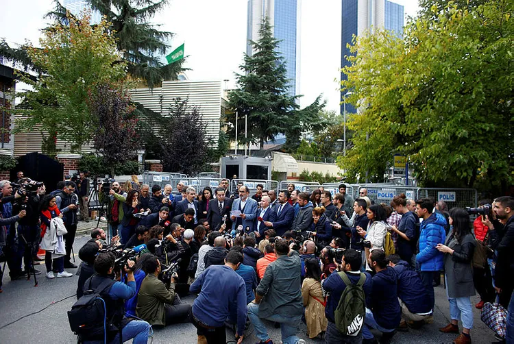 Turan Kışlakçı, Suudi Arabistan'ın İstanbul Başkonsolosluğu önünde yaptığı açıklamada, 18 gün önce, Türk Arap Medya Derneği'nin üyelerinden, gazeteci, düşünür Cemal Kaşıkçı'nın "eli kanlı katillerce" katledildiğini söyledi.