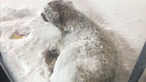 Kısa süre sonra başlayan ve lapa lapa yağan kara rağmen uyumayı sürdüren köpek, beyaz örtünün altında kaldı