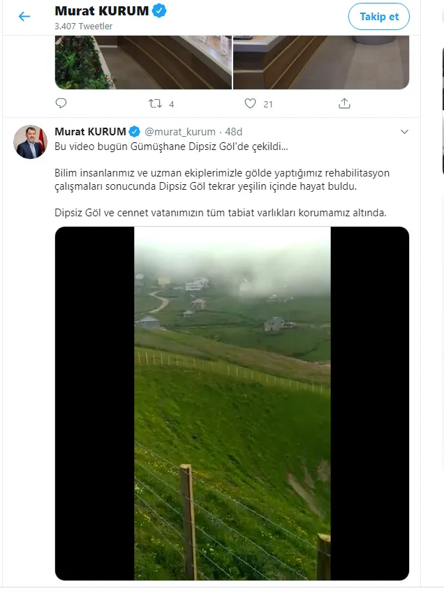 Bakan Kurum'dan son dakika Dipsiz Göl paylaşımı