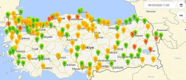 İHA muhabirinin Çevre ve Şehircilik Bakanlığı Sürekli İzleme Merkezi'ndeki istasyon verilerinden aldığı bilgiye göre, Corona Virüsü vakasının henüz görülmediği 5 Mart ile 19 Mart tarihi arasındaki hava kalitesinde gözle görülür bir fark ortaya çıktı. Çevre ve Şehircilik Bakanlığı'nın Sürekli İzleme Merkezi tarafından ölçülen değerlere göre 5 Mart tarihinde İstanbul dahil olmak üzere yurdun büyük bir bölümünde hava kalitesi orta ve hassas derecedeydi. Ancak Corona virüsü önlemleri sonrasında aradan geçen 14 gün içinde hava kalitesi bazı merkezler dışında genel itibariyle iyi kalitede ölçüldü.